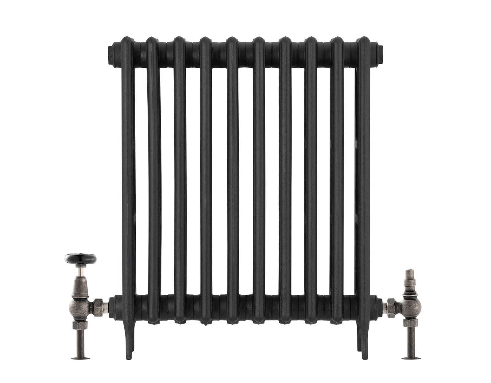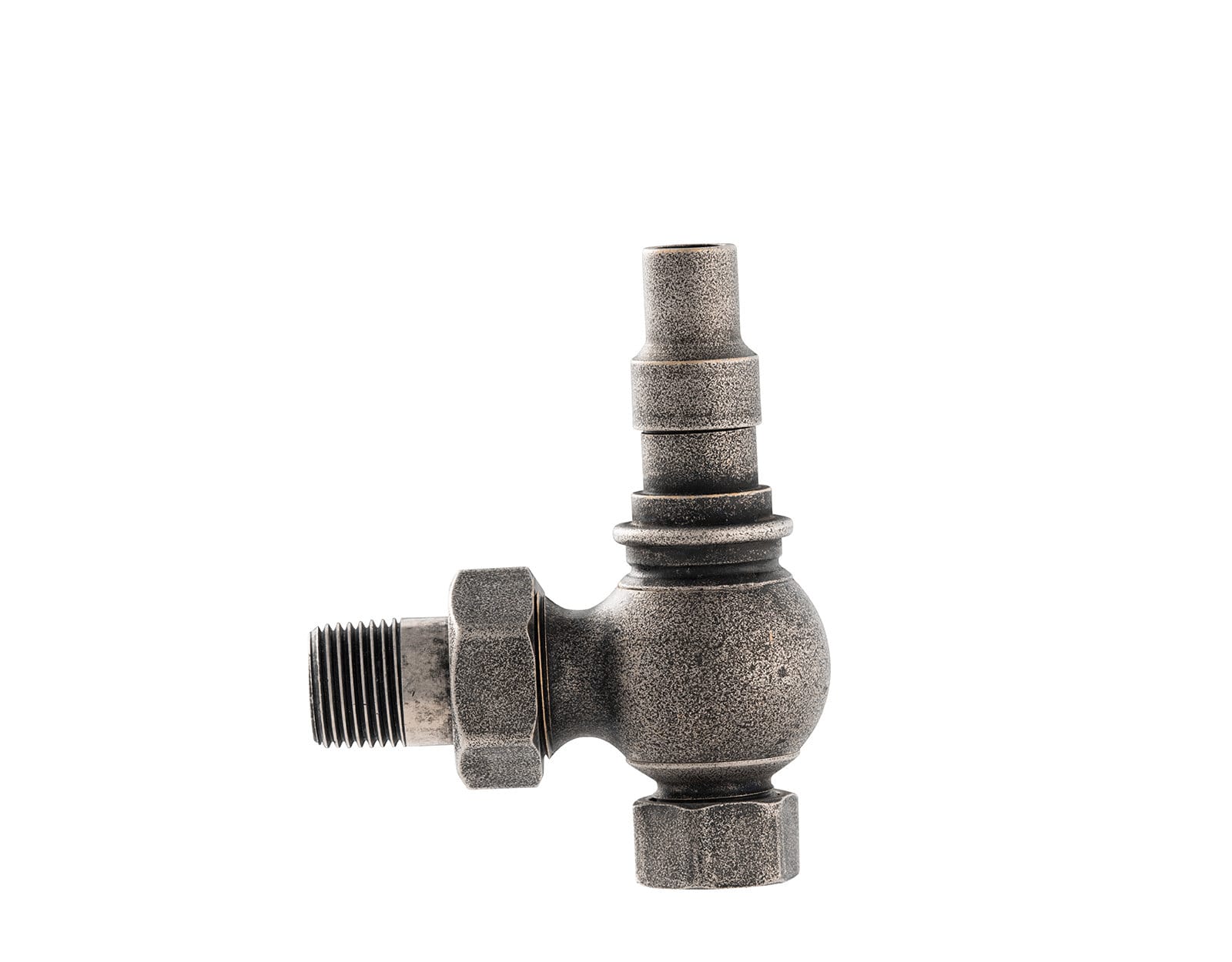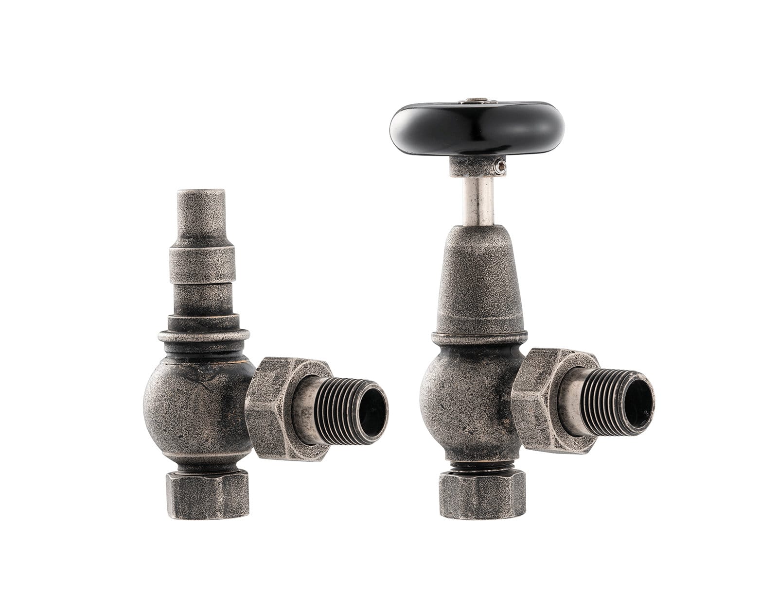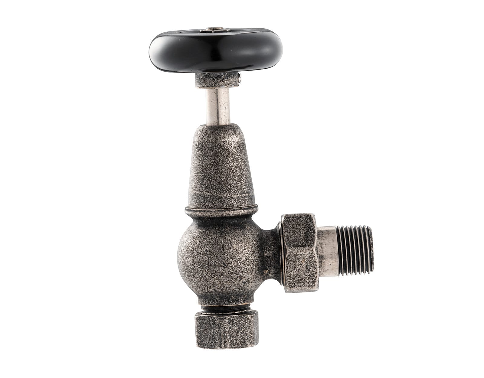 The UK20 is a traditional angled manual radiator valve set with an FSC certified black wooden wheel design. It comes with 2 valves, the wheel head, and lock shield.